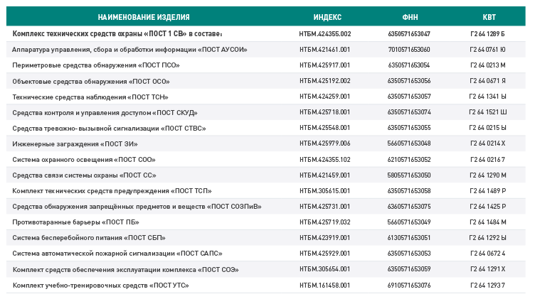 Исполнение комплекса «ПОСТ 1 СВ» зависит от категории охраняемого объекта, его конфигурации, используемых структурных элементов (систем) и технических средств.