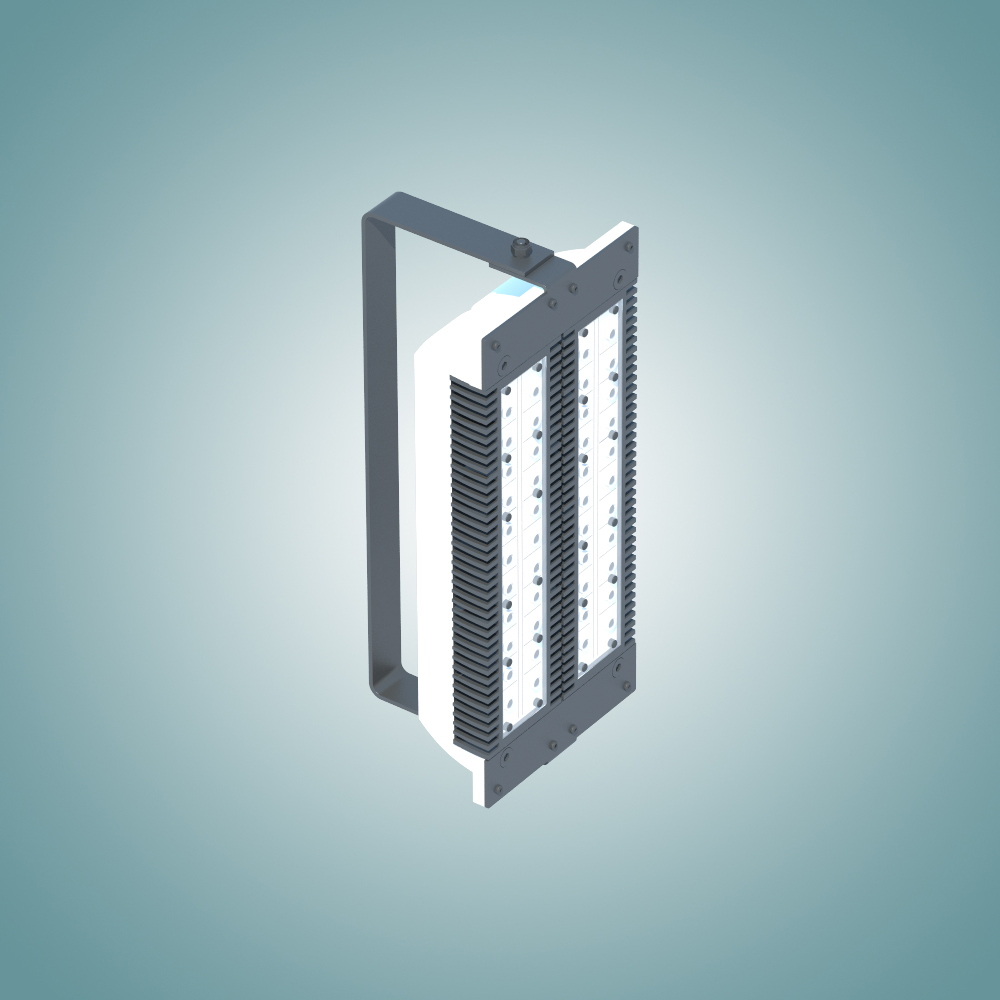 110 Вт. 10 град. 4000-5000 К 90-305 В. Двухмодульный светодиодный светильник прожекторного типа см. рисунок 2 с узконаправленным лучом 10° для промышленного освещения, для освещения периметров промышленных территорий.