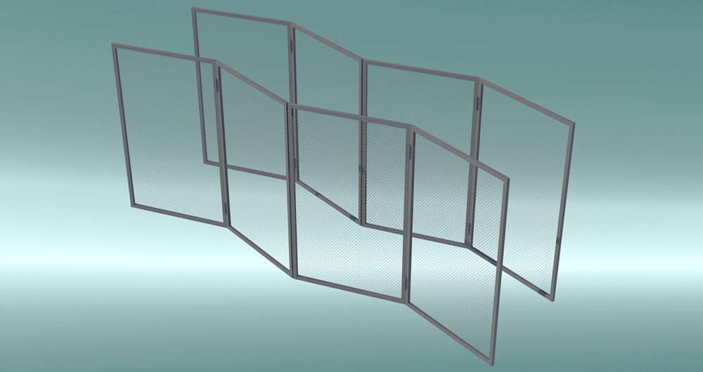 Вариант №1. Модуль из 3-х секций (1,5х2,5 м) выполненных из профильной трубы с внутренним заполнением из сетки «Рабица». Сборка секций в модуль и стыковка модулей - посредством гаражных петель.