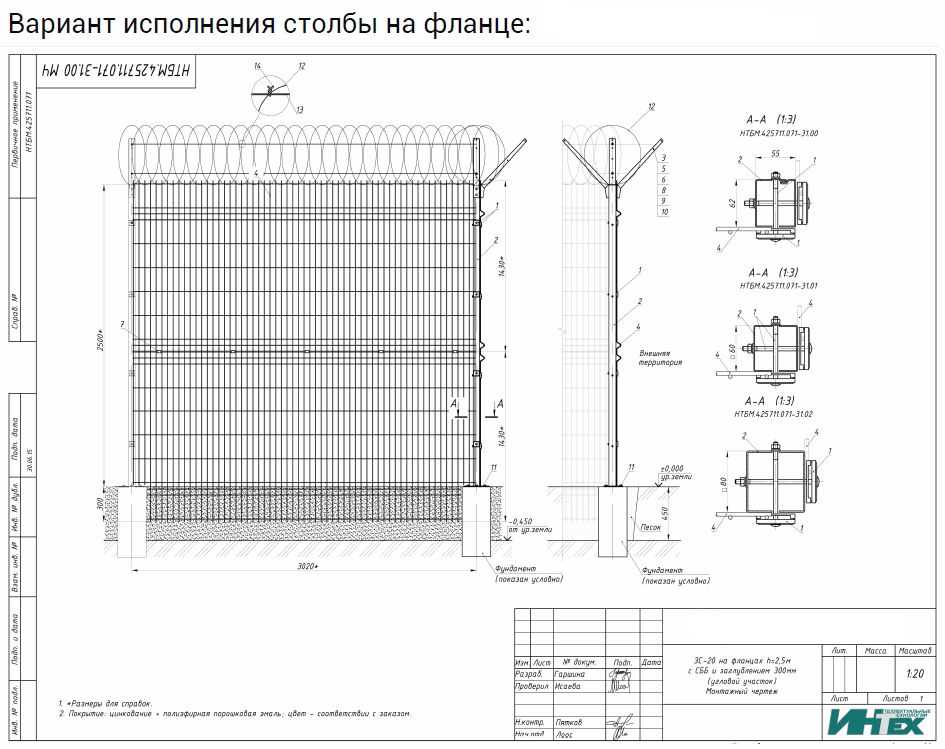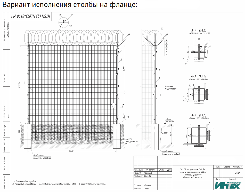 ЗС-20 предназначено для создания физического препятствия и размещения на нем периметровых средств обнаружения, с целью регистрации фактов (попыток) несанкционированного проникновения на территорию охраняемых объектов и выдачи тревожных извещений.