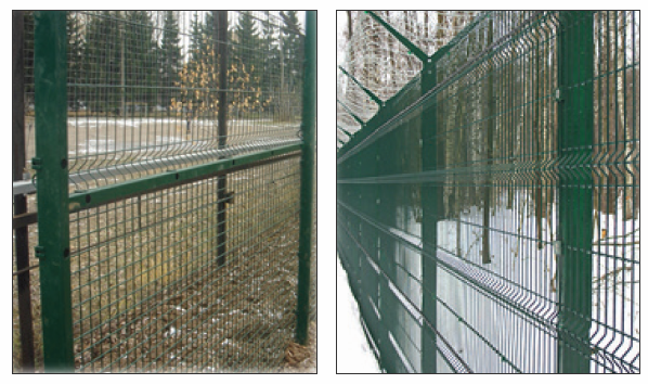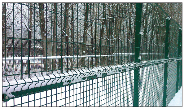 Крепление панелей к столбам осуществляется специальными скобами с термокомпенсацией, исключающей ослабление соединения в процессе эксплуатации при перепадах температуры окружающей среды.